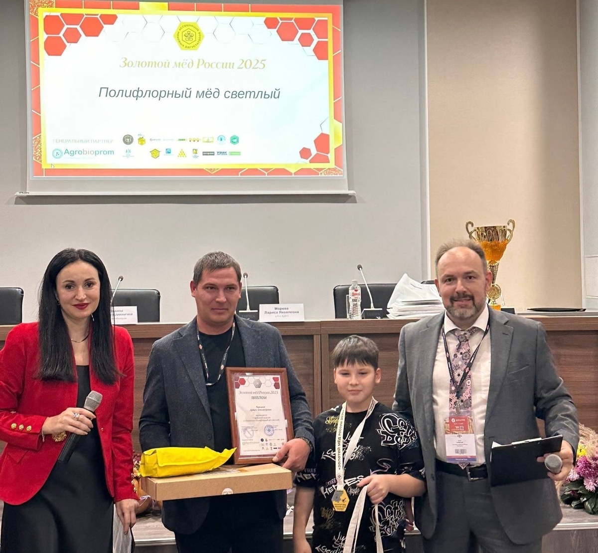 Башкирские пчеловоды завоевали две золотые, три серебряные и две бронзовые медали на всероссийском конкурсе «Золотой мёд России-2025». Об этом сообщили в министерстве сельского хозяйства РБ. Церемония награждения победителей и призеров состоялась в Краснодаре, на международной сельскохозяйственной выставке «Югагро». Пчеловод из Башкортостана Артём Черников завоевал четыре награды. Так, золотую и серебряную медали он получил за светлый полифлорный мёд, серебряную и бронзовую медали — за липовый мёд. Кроме него «золота» за липовый мед и «серебра» за полифлорный светлый мёд удостоен еще один башкирский пчеловод Джалиль Хакимов. Почетную «бронзу» за гречишный мед привез в республику Марат Идрисов. «На конкурс принимался мед, произведенный в сезон 2025 года, со всех регионов России, один участник мог подать до трех образцов продукции в каждой номинации. Эксперты оценили 432 образца мёда в девяти номинациях, учитывали натуральность и состав продукта, его органолептические свойства, соответст