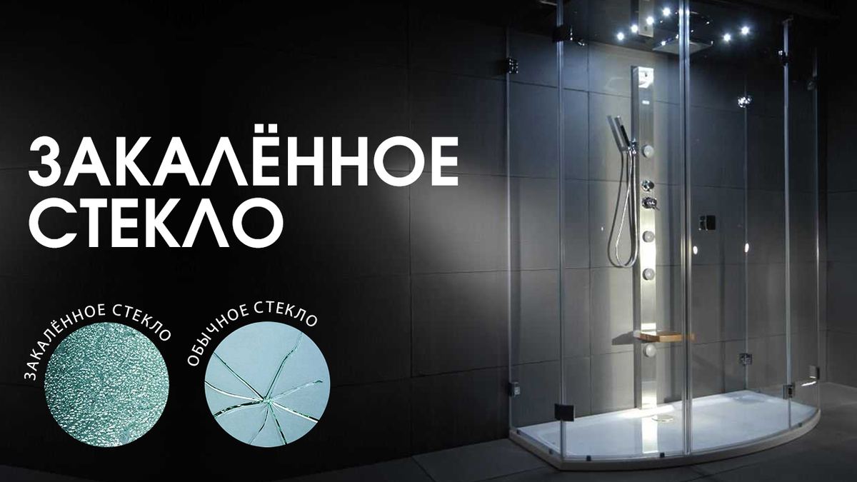 Сейчас, во многих сантехнических изделиях используется закалённое стекло. Это и душевые кабины, и ограждения, и мебель для ванных комнат. Закаленное стекло представляет собой листовое стекло, подвергнутое специальной термической обработке с целью повышения механической прочности и обеспечения безопасного характера разрушения. Закаленное и гнуто закаленное стекло является безопасным в момент его разрушения. Обычное стекло разрушается, образуя кусочки разного диаметра с острыми кромками, что представляет опасность для жизни и здоровья человека. ПРОЧНОСТЬ ЗАКАЛЕННОГО СТЕКЛА ВЫШЕ ОБЫЧНОГО В 5-7 РАЗ! Процесс изготовления закаленного стекла состоит из двух основных этапов: нагревания стекла и его резкого охлаждения, в результате чего в верхних слоях стекла образуются остаточные механические напряжения сжатия. В результате такой обработки стекло становится особо прочным материалом, имеющим повышенную механическую прочность, термостойкость и безопасность при разрушении. При его разрушении хар
