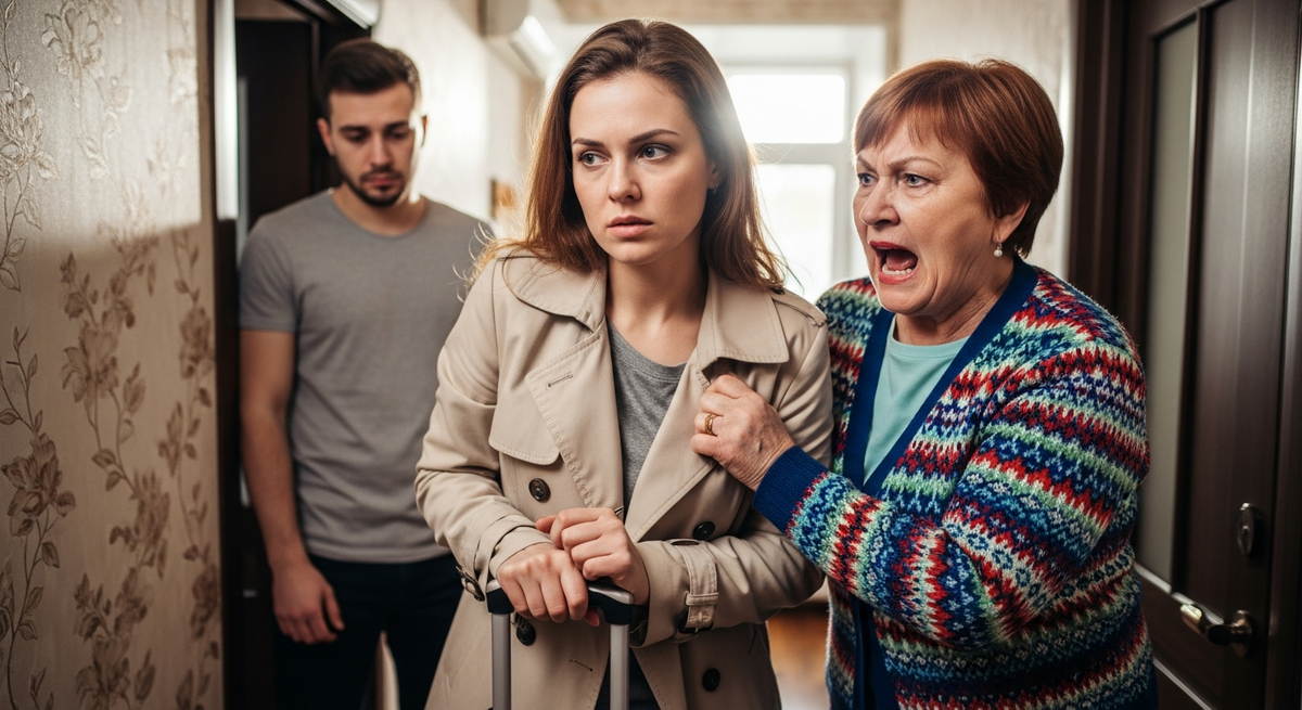 Марина взялась за ручку чемодана и двинулась к выходу, но свекровь не отступала. Она вцепилась в ручку чемодана с другой стороны.
