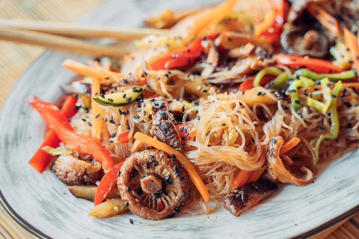 Фунчоза, или стеклянная лапша, давно завоевала любовь поклонников здорового питания. Она не содержит глютена, быстро готовится и отлично впитывает ароматы и вкусы соуса, овощей и грибов. Блюдо получается сытным, но при этом легким для пищеварения, подходит для вегетарианцев и людей, следящих за фигурой.