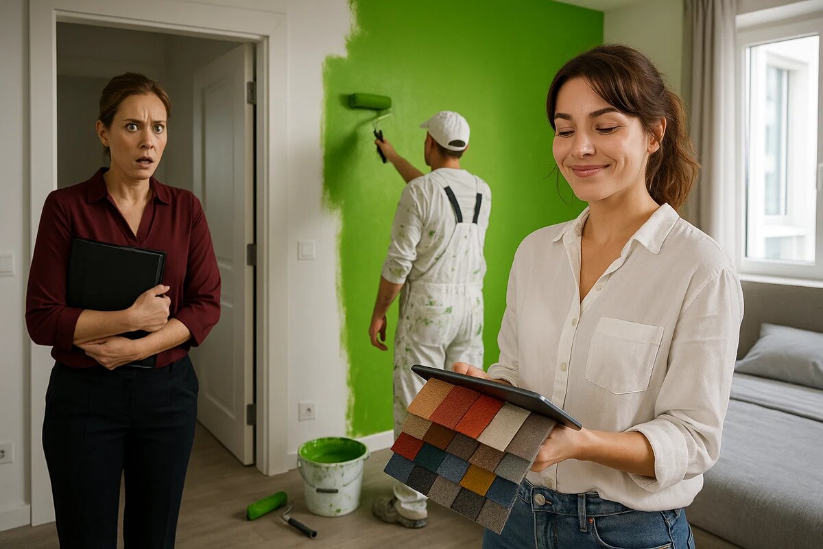 Маляры собрались быстро. Карина стояла у стены, скрестив руки, и смотрела, как Анна провожает их до выхода. Когда дверь закрылась, Анна вернулась наверх. Карина всё ещё стояла в спальне. Смотрела на недокрашенную стену — половина зелёная, половина белая.