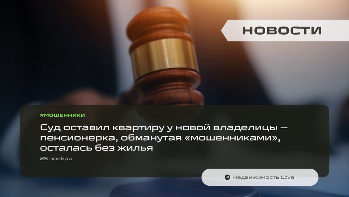 ⚡️ Суд оставил квартиру у новой владелицы — пенсионерка, обманутая «мошенниками», осталась без жилья. ℹ️ В Благовещенском городском суде Амурской области завершилось дело, которое иллюстрирует очередной конфликт между уголовной и гражданской юрисдикциями: 65-летняя пенсионерка потребовала вернуть проданную квартиру, заявив, что оформила сделку под давлением мошенников, но суд признал правомерность перехода права к текущей владелице и отклонил иск истца. ⚖️ По материалам дела, летом 2024 года женщина под влиянием злоумышленников оформила кредиты примерно на 1,3 млн рублей, затем также продала свою квартиру для якобы её "сокрытия" за цену ниже рыночной. Мошенники действовали по классической схеме: представлялись сотрудниками ФСБ и обещали прекратить в отношении пенсионерки уголовные преследования. Получив деньги на свои счета, они исчезли. 📆 Через два месяца покупатель перепродал квартиру третьему лицу — женщине, которая впоследствии была признана судом добросовестным приобретателем и