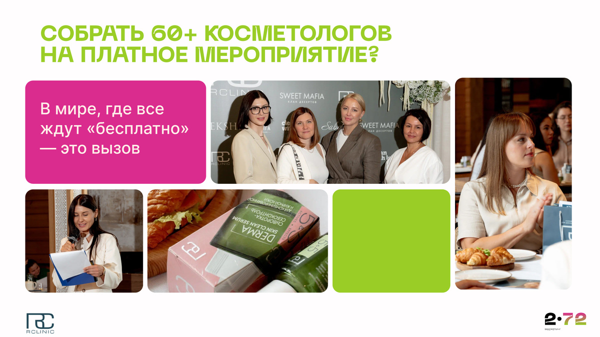 Сможем ли мы собрать 60 косметологов на платное мероприятие в мире, переполненном бесплатными вебинарами? Перед нами стояла амбициозная задача: повысить узнаваемость о тюменском бренде космецевтики RCLINIC и быстро выйти на аудиторию профессиональных косметологов. Мы рассматривали разные варианты: