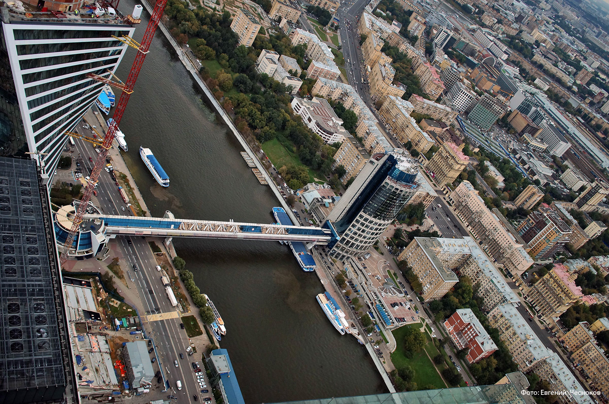 С крутого берега открывалась панорама Краснопресненской набережной, где по соседству с заводом железобетонных изделий и каменоломнями в Камушках в 1977 году был построен первый павильон «Экспоцентра» - выставочного комплекса, принявшего за свою долгую историю сотни международных выставок. По распоряжению федеральных властей советский модернизм Михаила Посохина и Бориса Тхора уступит место современному зданию Национального центра «Россия».