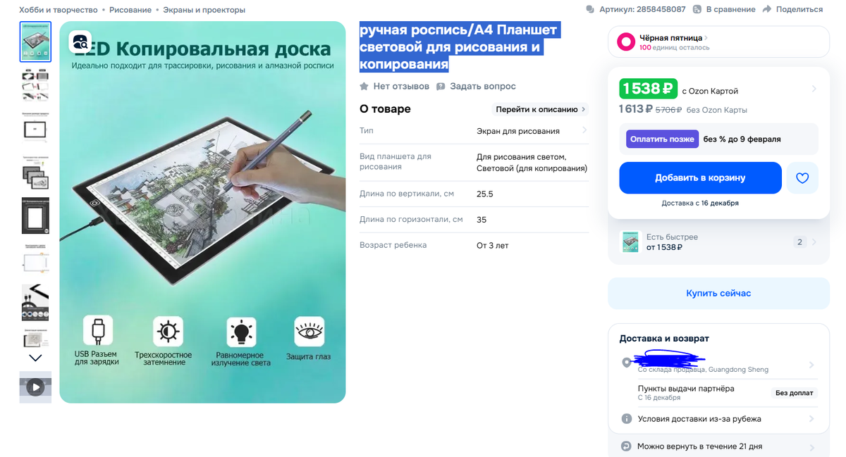 Говорят, нынче черная пятница... Но мы-то с Вами знаем, как это работает на самом деле :) Поэтому предлагаю по классике похихикать и посмотреть интересные находки на Озон. Погнали! Ссылка на озон Уж не знаю, кому действительно мог бы пригодиться данный инструмент.. Но мне так и хочется воспользоваться данным планшетом для переноса картин по номерам собственного производства. Правда, сильно сомневаюсь, что эта штука сможет просветить холст... В целом, выглядит довольно симпатично. Но на практике вообще не представляю, зачем. В видео-ролике, который показывает пример использования, человек просто копирует готовую мультяшку. Зачем, если можно отсканировать (=сфотографировать) и напечатать? Напишите в комментариях, если считаете это полезным :) А мы смотрим дальше. Ссылка на озон Конечно, первым бросается в глаза ценник. Но! Качественный конструктор вполне может столько стоить. Судя по отзывам, это что-то вроде Лего, только не Лего. А олень так и вовсе не выглядит пластиковым... Тем не