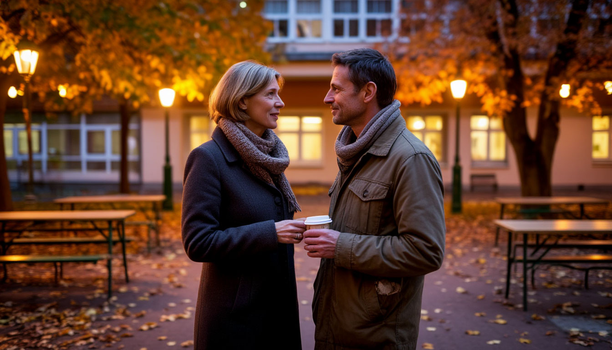 Они вышли из школы почти одновременно. Осенний вечер был прохладным, воздух пах мокрой листвой и чем-то школьным, знакомым с детства — мелом и линолеумом.