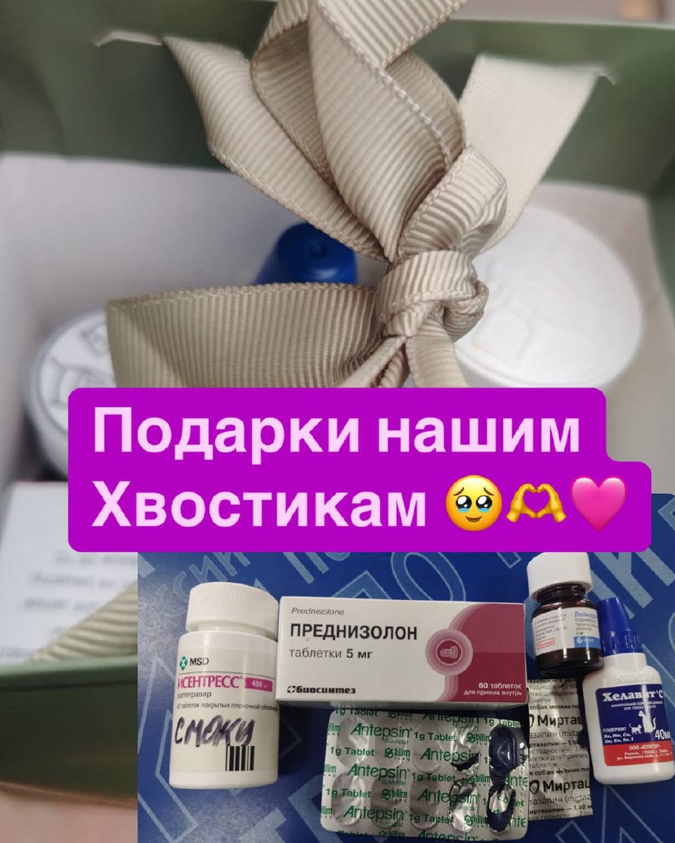 Спасибо большое @psy.kary_bo (инстаграм )🙏🥹🫶 Мы благодарны очень за лекарства . -Друзья, нам всегда нужны лекарства ,корма, наполнители и одноразовые пеленки и мы с радостью и благодарностью принимаем их в дар .