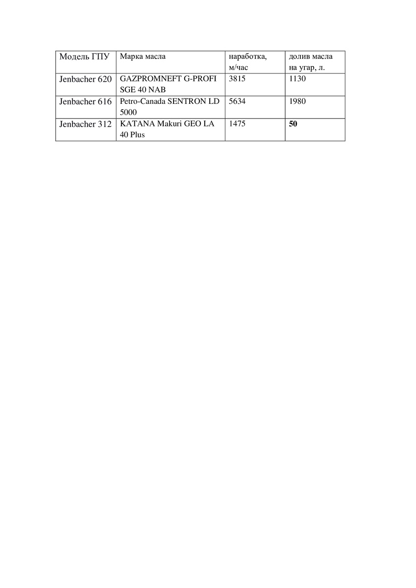 Расход масла на угар сравнительная табл. Jenbacher 312, Jenbacher 616, Jenbacher 620 .