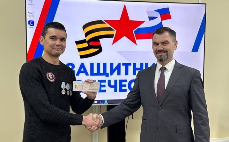 Филиал Государственного фонда «Защитники Отечества» по Республике Мордовия продолжает работу по выдаче ветеранских удостоверений бойцам ВК «Вагнер». Очередным обладателем заветного документа стал житель Рузаевки Ансар Юсупов. Он отправился на фронт осенью 2022 года, выполнял боевые задачи по Бахмутом, являлся старшим расчета автоматического станкового гранатомета. За службу в зоне специальной военной операции Ансар награжден государственной медалью «За отвагу» и ведомственными наградами. Недавно Юсупов поступил на персональное сопровождение филиала Госфонда. Основным вопросом для защитника стало получение удостоверения ветерана боевых действий. Социальный координатор Екатерина Лимонникова помогла собрать необходимый пакет документов, который был направлен в Центральный аппарат Госфонда «Защитники Отечества». Комиссия выдала положительное заключение, и Юсупов стал полноправным ветераном боевых действий. Удостоверение ему в торжественной обстановке вручил руководитель филиала Государстве
