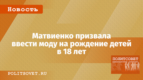 Спикер Совета Федерации Валентина Матвиенко заявила, что в России должно стать модным рождение детей сразу после достижения совершеннолетия.