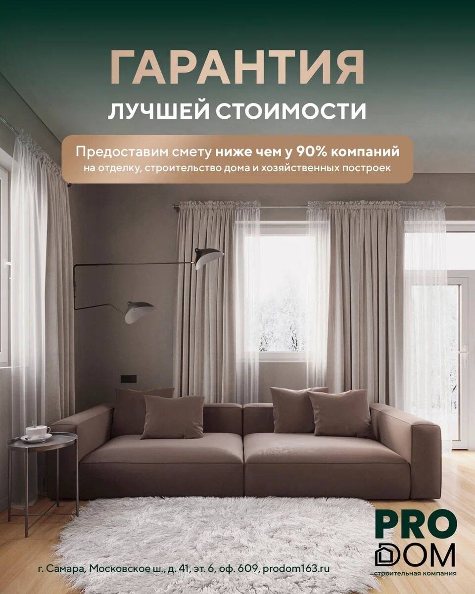 ❗️Партнерская Акция «Гарантия Лучшей Стоимости»❗️ Друзья, наши партнеры, компания PRODOM, объявили акцию для тех, кто задумывается о доме мечты, мастерской, тёплом гараже под квадро технику или качественной отделке жилья. С 1 ноября 2025 года действует акция: смета на отделку, строительство дома и хозяйственных построек будет ниже, чем у 90 % компаний на рынке. Почему это интересно именно вам: ▪️ Экономия средств - гарантия лучшей цены помогает сократить бюджет на строительство и отделку. ▪️ Качество работ - все работы выполняются строго по стандартам, с соблюдением норм и правил. ▪️ Гарантия по договору: Дом и хозяйственные постройки - 5 лет Внутренняя отделка - 1 год ▪️ Надежные банки: в 2024 году компания получила аккредитацию в банках: Россельхоз, Почта Банк, Сбер, Альфа Банк, ВТБ, ДОМ.РФ. Это позволяет оформить дом на выгодных ипотечных условиях. Подробности акции и условия участия смотрите по ссылке/в кнопке под постом. Узнайте стоимость услуг и получите смету в удобном