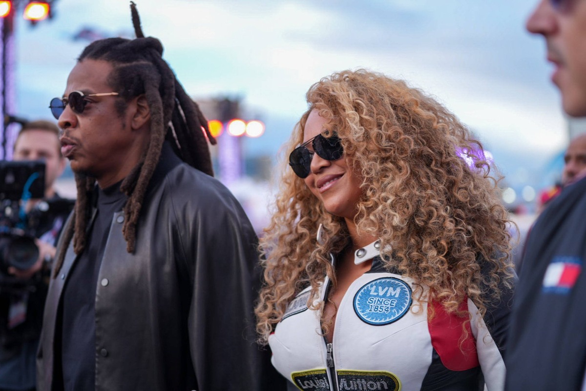 Бейонсе посетила Формулу-1 в кожаном костюме с декольте до талии
