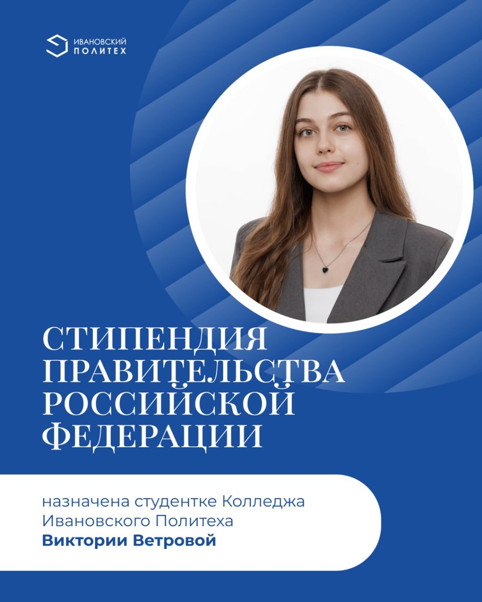 В соответствии с приказом* Министерства просвещения России, студентке Колледжа ИВГПУ, Виктории Ветровой назначена стипендия Правительства