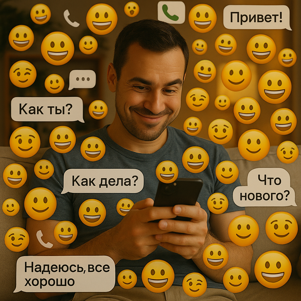 «Привет, у меня всё отлично 😊» Смайлик сверху, дырка внутри. Ты думаешь, что показала: «Я не обижена, я выше». Он видит: «Она всё равно рада, что я объявился. Можно продолжать в том же духе».