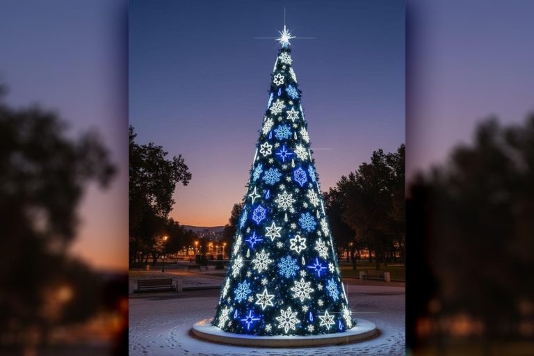 Новогодняя ель с яркой гирляндой украсит набережную Афанасия Никитина в Твери