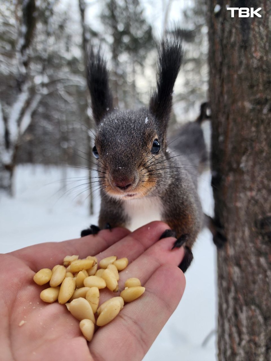 🐿️ Орешки есть? А если найду? За фото благодарим нашего подписчика 💖 Напомним, что с рук лучше не кормить животных, так советуют специалисты, будьте осторожны🙏 ТВК