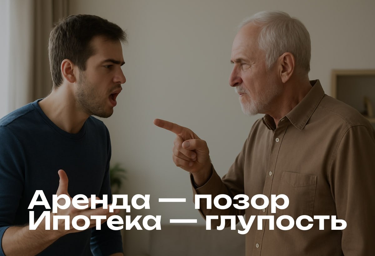 В России разговор о жилье почти всегда заканчивается скандалом. Старшие поколение смотрит на молодых с презрением: «Вы арендуете? Серьёзно? Позор!» Молодые им отвечают с раздражением: «Вы ипотеку считаете успехом? Да это долговая клетка!» Почему так? Потому что старшие выросли в мире, где квартира была мерилом статуса и силы. Не важно, как вы живёте, важно, что «своё». Аренда для них — это не просто временное решение, это клеймо на лбу: «Ты ничего не достиг». Молодые же смотрят на цифры: ипотека под 25%, рост цен, кредиты на всё, от мебели до автомобилей. Для многих ипотека кажется дырой, в которую исчезает вся жизнь. «Лучше арендовать и жить сейчас, чем 20 лет гробить себя ради квадратных метров», — думают они. А в ответ слышат: «Вы ленивые, не хотите работать на своё!». Так начинается настоящая война. Старшие меряют успех квадратными метрами, документами, «статусом». Молодые — свободой, временем, возможностью жить здесь и сейчас. Каждый считает себя правым. Каждый спор превращается в