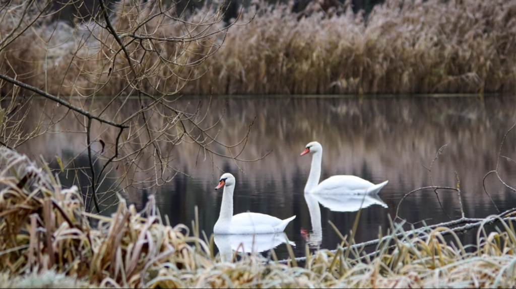 Пара белых лебедей поселилась в заповеднике «Брянский лес» и не торопится улетать на зимовку
