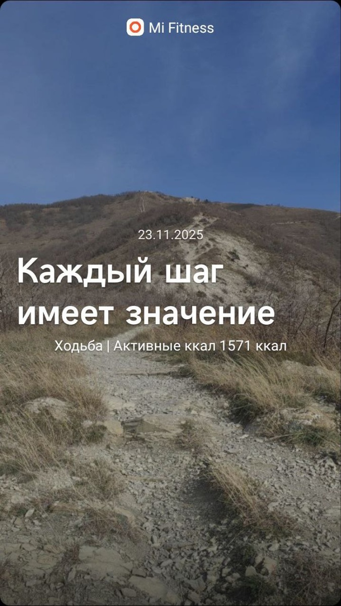 Тренировка 3/48 — Поход в горы 💪Формат и время тренировки: Подъем — примерно 7 км за 3 часа, спуск — около 8 км за 2 часа. По пути — паузы, обед и наслаждение природой. 🌸 Как себя чувствую после тренировки: Ноги устали, немного пульсируют. Чувствую усталость и сильное желание лечь и отдохнуть 😅 🔥 Мотивация и мысли: За неделю задолжала себе час тренировки, сегодня решила наверстать. Погода +20, теплый ветер, слегка облачно — отличный повод для активного отдыха, красивых видов и горного воздуха. 😨 Главная сложность сегодня: Поздний выход из дома вызывал опасение, что не успеем вернуться до темноты. Подъем был каким-то очень трудным (уже ходили по этой тропе весной, было как будто проще). 🏆Что помогло справиться с этой сложностью: По дороге аккуратно выбирали маршрут в зависимости от времени, что помогло адаптироваться и безопасно спуститься в сумерках. Также помогли двум людям в горах — поделились водой женщине, забывшей её, и поддержали мотоциклиста после падения. ⭐️Инсайты: