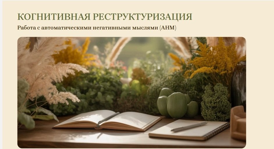 Работа с автоматическими негативными мыслями Когнитивная реструктуризация помогает лучше понять свои реакции, увидеть автоматическую мысль и оценить, насколько она соответствует реальности. Эта форма полезна тогда, когда эмоции становятся слишком сильными и мешают трезво смотреть на ситуацию. 1. Определи ситуацию Начните с фактов. Опишите событие таким, каким оно было - что произошло, где, с кем и когда. Чем точнее описание, тем легче будет работать дальше. Событие: ______________________________ Назовите эмоции, которые возникли в этой ситуации.