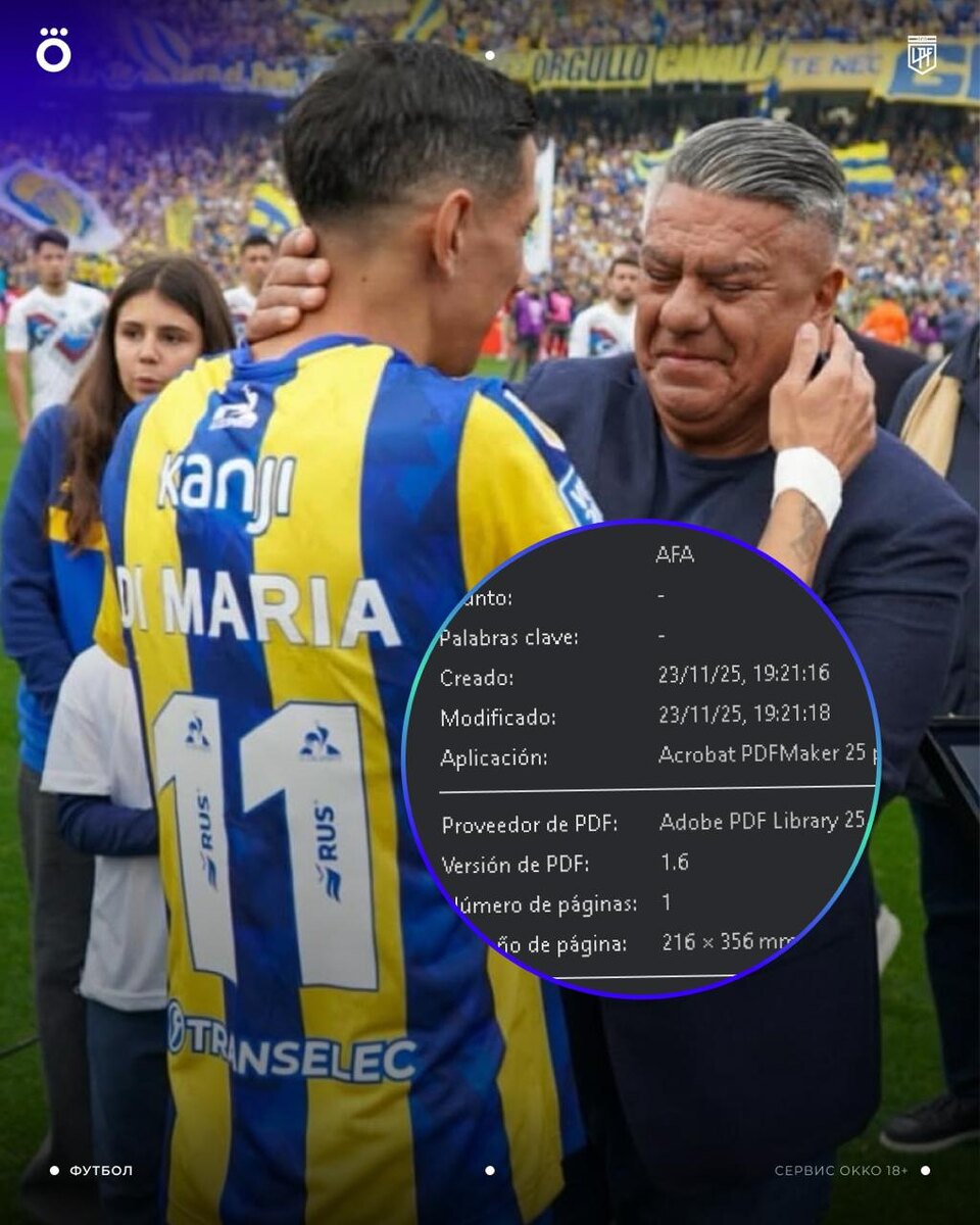 В ответ на пост В Аргентине назревает новый скандал межгалактического масштаба: AFA подтасовал официальный документ ⚡️ На днях игроки «Эстудиантеса» развернулись спиной к футболистам «Росарио Сентраль» во время чемпионского коридора — так они протестовали против присвоения титула команде Ди Марии. После этого Аргентинская футбольная ассоциация изменила бюллетень 6625, в котором прописан регламент чествования чемпиона страны. Метаданные PDF-файла документа теперь показывают дату создания 23 ноября 2025, а не 12 февраля 2025, как указано в бюллетене. Теперь футболисты «Эстудиантеса» должны предоставить заявление в дисциплинарный трибунал. Если выяснится, что акция протеста была решением президента клуба Хуана Себастьяна Верона, то AFA применит к нему санкции. Если же игроки скажут, что это было их собственное решение, AFA накажет участников матча. Что вообще творится в этой Латинской Америке? 🤯