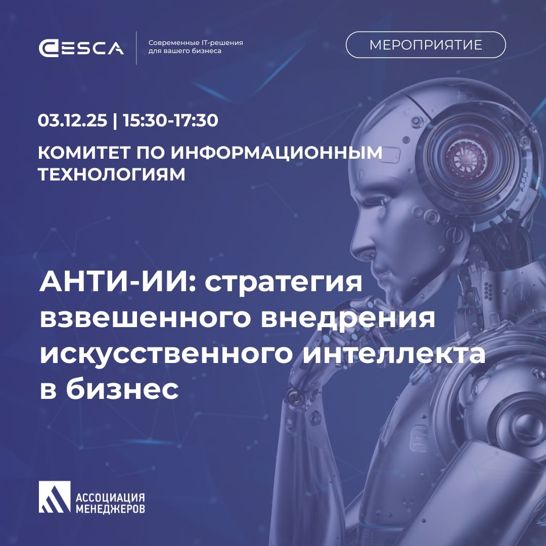 Искусственный интеллект из конкурентного преимущества превратился в источник стратегических рисков. От юридической ответственности за решения алгоритмов до неэффективного освоения крупных инвестиций — бизнес столкнулся с новой реальностью. Комитет по информационным технологиям Ассоциации менеджеров приглашает на экспертное заседание, где мы оценим ИИ не как модный тренд, а как управленческий вызов. В фокусе дискуссии — ответы на ключевые вопросы: ▪️ Как выстроить баланс между инновациями и контролем рисков? ▪️ Почему критически важно минимизировать зависимость от зарубежных платформ и облаков? ▪️ В каких случаях классическая автоматизация надежнее сложных ИИ-решений? ▪️ Какие управленческие инструменты помогают фильтровать технологии, приносящие реальную пользу бизнесу? В результате сформируем понимание «АНТИ-ИИ»-стратегии: это не отрицание технологий, а их осознанное, безопасное и прагматичное применение. Модератор заседания: Евгений ДОМОЖИРОВ, сопредседатель комитета по ИТ, Ассоц