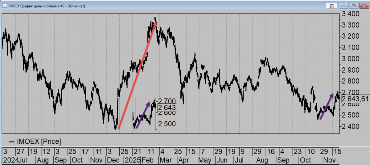 Сравнение "роста на переговорах" весной и сейчас. Если перенести текущий рост на график весны. Думаю разница настолько очевидно, что за любое объяснение типа "но теперь рынок верит меньше" можно смело плевать в лицо :) Особенно с учётом того что весной никаких конкретных планов с пунктами и сроками вообще не было. А насколько наш рынок стал манипулятивен и зависим от сговоров крупных игроков без нерезов мы видим прямо сейчас на графиках.