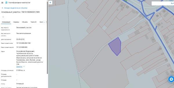 Название: Земельный участок, с кадастровым номером 74:10:0606005:189, площадью 2000 кв.м., категория земель: земли населенных пунктов