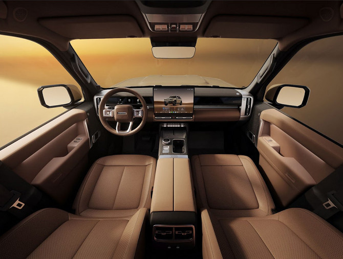 На автосалоне в Гуанчжоу дебютировал новый внедорожник Chery iCAUR V27 2026, который уже привлек внимание публики не только своим внешним обликом, но и свежим взглядом на оформление салона. Российские автолюбители смогут познакомиться с этой моделью лишь в 2026 году, но уже сейчас ясно: новинка претендует на статус заметного игрока в сегменте. Читать на сайте: Внедорожник Chery iCAUR V27 дебютировал с интерьером в стиле «космоса» и готовится к выходу в России Внешность новинки выдержана в духе концепции Future Classic — здесь гармонично сочетаются узнаваемые черты классических внедорожников и современные дизайнерские решения. Габариты впечатляют: длина почти 4,9 метра (а с запаской — свыше 5 метров), ширина чуть менее двух метров, высота — 1,89 м, а колесная база — 2,9 м. Внедорожник выделяется широкой колеёй, коротким передним свесом, длинным капотом и вытянутым профилем, что придаёт ему солидный и уверенный вид (фото: Chery). Внутри царит атмосфера футуризма: концепция Stellar Cockpi
