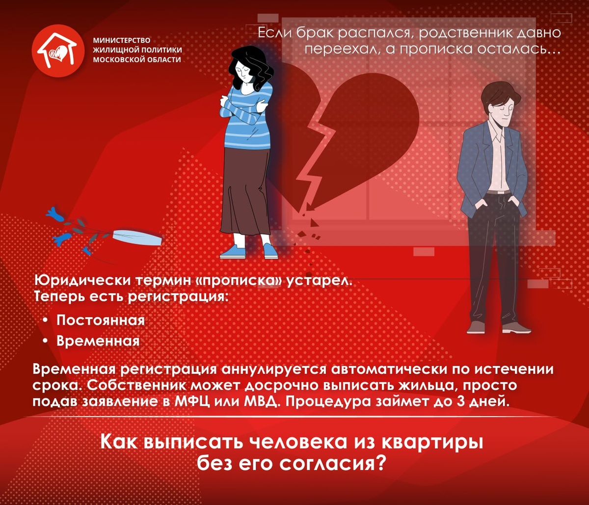 😐Как выписать человека из квартиры без его согласия? 🫨Если брак распался, родственник давно переехал, а прописка осталась… В карточках рассказываем, как быть, если человек не хочет выписываться добровольно. @minzhil_mo