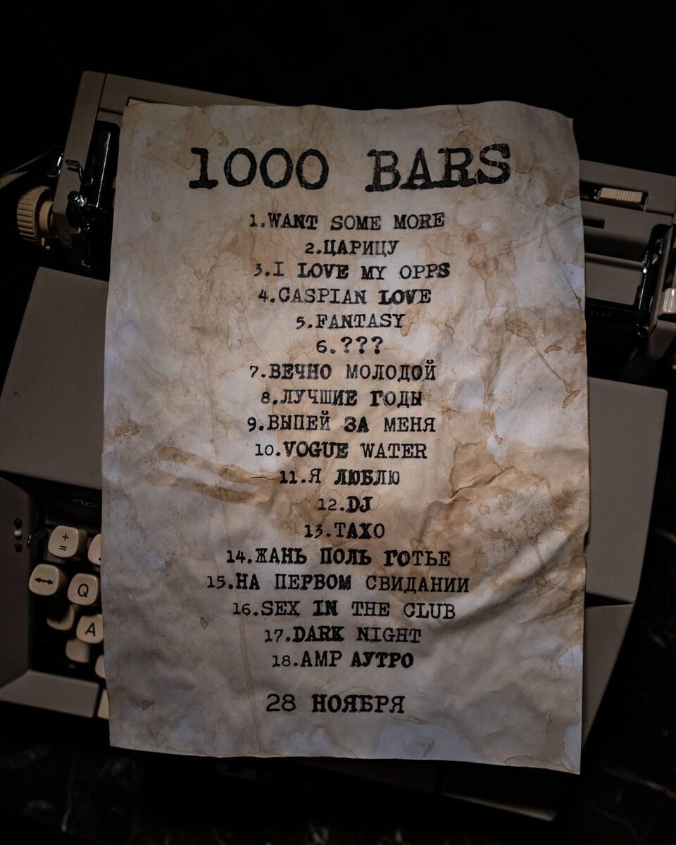 ⚡Heronwater опубликовал треклист нового альбома «1000 BARS» Треклист: 1. WANT SOME MORE 2. ЦАРИЦУ 3. I LOVE MY OPPS 4. CASPIAN LOVE 5. FANTASY 6. ??? 7. ВЕЧНО МОЛОДОЙ 8. ЛУЧШИЕ ГОДЫ 9. ВЫПЕЙ ЗА МЕНЯ 10. VOGUE WATER 11. Я ЛЮБЛЮ 12. DJ 13. ТАХО 14. ЖАНЬ ПОЛЬ ГОТЬЕ 15. НА ПЕРВОМ СВИДАНИИ 16. SEX IN THE CLUB 17. DARK NIGHT 18. АМР АУТРО Премьера альбома — 28 ноября. @mainstreamusic
