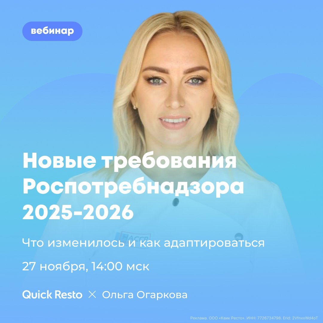 Новые требования Роспотребнадзора 2025-2026 😲 С осени 2025 года Роспотребнадзор расширяет сферу обязательной маркировки товаров и меняет порядок проверок. Усиливается цифровой контроль, поэтому любая ошибка в документах или учёте может привести к штрафам или остановке работы. На вебинаре 27 ноября в 14:00 по МСК, поговорим о том, что именно меняется и как бизнесу подготовиться, чтобы работать спокойно и без нарушений. Что конкретно обсудим: • Внезапные проверки без предупреждения: как проходят и что учитываеся. • Обязательные профилактические визиты и подготовка к ним. • Цифровой контроль: как Роспотребнадзор использует мониторинг и онлайн-проверки. • За что могут приостановить деятельность: разбор реальных кейсов. Журнал «Котёл» проводит вебинар Спикер — Ольга Огаркова: • Генеральный директор компании HACCP-AUDIT. • Руководитель онлайн-академии по пищевой безопасности. • Эксперт-аудитор ХАССП. • Спикер PiR EXPO, Сколково, Moscow Modern Bacery, «Ресторанные Ведомости», РЭУ им. П