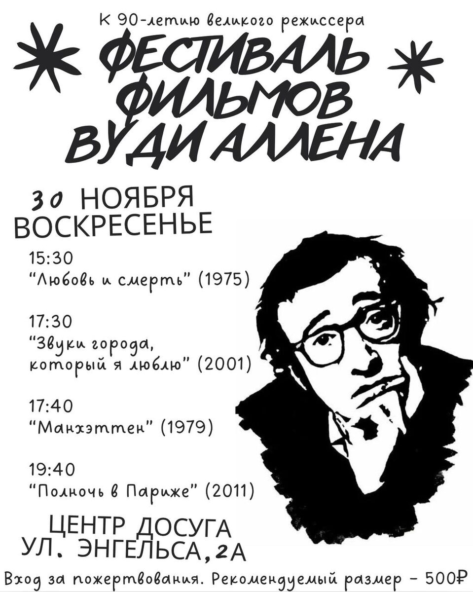 📽30 ноября Культурный Клуб приглашает кинолюбителей в Центр досуга на Фестиваль фильмов Вуди Аллена