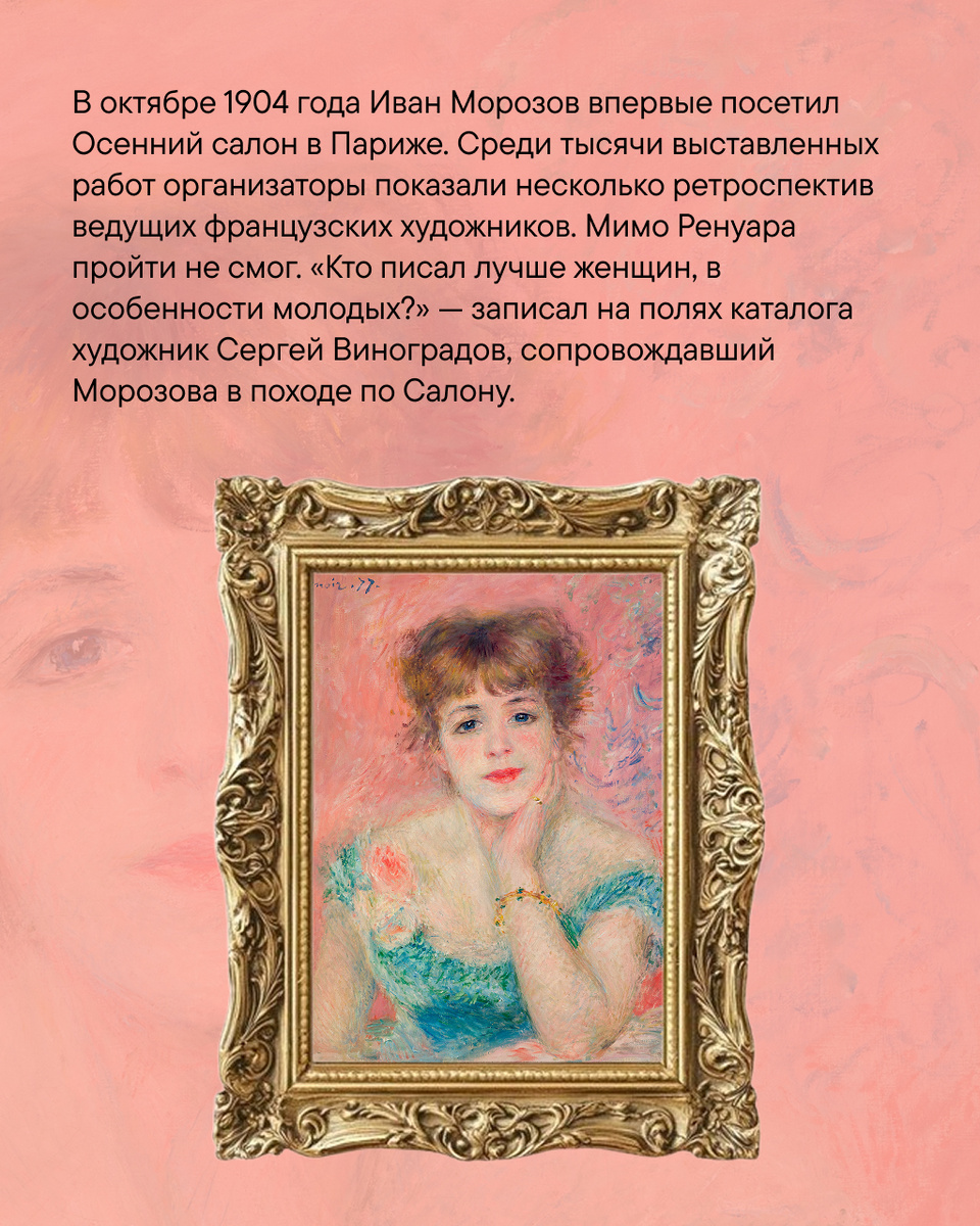 27 ноября 1871 года родился Иван Абрамович Морозов — коллекционер, меценат, представитель купеческой династии Морозовых. Его собрание стало важной частью коллекции Пушкинского музея. В юности Иван Морозов, по его собственным словам, мечтал быть художником. Чтобы стать настоящим художником, признавался он, «надо очень, очень много работать, посвятить всю свою жизнь живописи. Иначе ничего не выйдет. Толк будет только тогда, когда на всё в жизни будешь смотреть глазами художника, а это не всякому дано. Вот мне этого дано не было, и приходится восторгаться чужими работами». Художником Иван Морозов не стал, но его талант чувствовать и понимать живопись позволил создать поразительную коллекцию, ничем не уступающую собранию Сергея Щукина. Рассказываем вам о работах из собрания Пушкинского музея, которые приобрёл Иван Морозов.