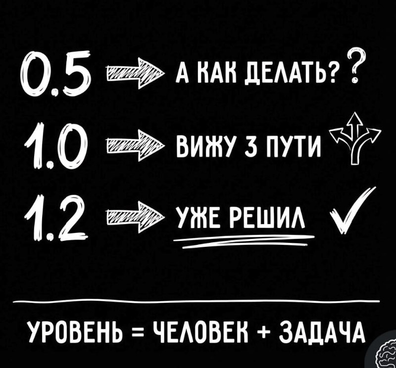 Как понять, кто перед тобой: 0,5 / 1 / 1,2 В жизни всё обычно так: открываешь чат / задачу и видишь только аватарку и текст "ок, сделаю". Как по живому общению понять уровень человека в разрезе конкретной задачи? Я смотрю на 3 вещи. 1. Какая реакция на постановку 0,5: мало вопросов по сути, больше "а где взять доступ", "а какой логин", боится лишний раз уточнить, кивает "понял", лишь бы быстрее закончить разговор. 1: уточняет критерии результата, сроки, зависимости. "Что будет считаться успехом", "куда смотреть на цифры". 1,2: сразу ныряет в контекст: "А что до этого пробовали", "какая цель продукта", "какие ограничения по бюджету". 2. Как относится к неопределённости 0,5 любит чёткие инструкции, плохо переносит фразу "сделай, как считаешь нужным". 1: нормально держит зону неизвестности, но просит очертить рамки. - 1,2: сам ищет эту неопределённость, задаёт вопросы, которые тебе самому неприятно слышать. 3. Что происходит при первых трудностях 0,5: зависает или приходит с вопро