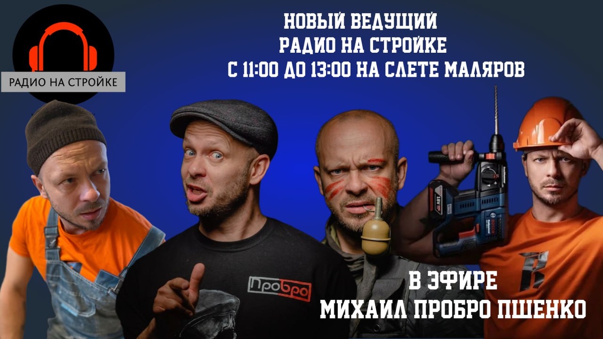 Друзья, Слёт Маляров настолько масштабное мероприятие, что главные блогеры страны не могут пройти мимо! Михаил ПроБро Пшенко станет на день ведущим Радио на Стройке и будет брать интервью и вести эфиры! 27 ноября с 11- 13 часов у вас есть уникальная возможность быть проинтервьюированным с ног до головы и попасть в отличную историю! Нужно предварительно записаться и забронировать время! Не пропустите! Регистрация обязательна https://slet-media-event.timepad.ru/event/3572020/