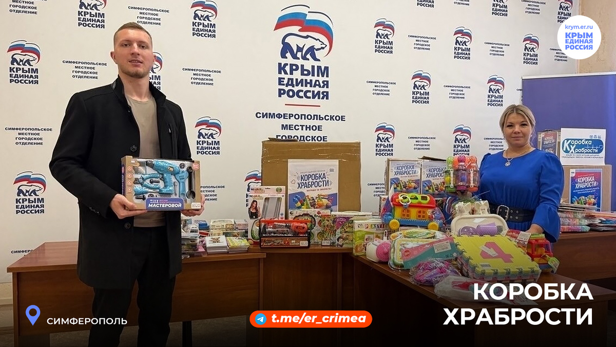В регионах Крыма продолжается благотворительная акция Единой России «Коробка храбрости». Депутаты, активисты и сторонники партии, неравнодушные жители собирают игрушки, конструкторы, детские книжки, раскраски, наборы для творчества и многое другое. Маленькие пациенты крымских больниц, которые проходят длительное лечение, получат их в награду за прохождение болезненных процедур. Напомним, чтобы поучаствовать в акции, любой желающий может до 1 декабря принести подарки в специальные коробки, расположенные в Штабе общественной поддержки Единой России (г. Симферополь, ул.А.Невского, 8) и местных общественных приемных Партии (https://krym.er.ru/contacts/reception/locals). #ЕдинаяРоссия #ЕР82 #КоробкаХрабрости Новости Партии в Телеграм: t.me/er_crimea