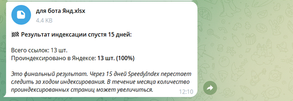 Наша ноябрьская гарантия индексации набирает невероятные обороты! Друзья, акция 100% индексация в Яндекс уже стала настоящим событием. Только представьте: вебмастера и SEO-специалисты уже доверили нам более 500 000 ссылок для ускоренной индексации! Это полмиллиона страниц, которые прямо сейчас получают шанс ворваться в поисковую выдачу Яндекса, привлечь новый органический трафик и обойти конкурентов. Пока вы читаете это, сотни сайтов уже укрепляют свои позиции. Забудьте о риске и платежах за "попытки". В рамках этой акции мы предлагаем то, чего не делает никто другой на рынке: Вы платите ИСКЛЮЧИТЕЛЬНО за результат — за каждую ссылку, которая гарантированно попадает в индекс. Никаких скрытых условий. Никакого риска для вашего бюджета. Если ссылка не проиндексирована — вы ничего не платите. Такое возможно только в сервисе SpeedyIndex. Мы верим в полную прозрачность. Вы не просто доверяете нам, вы контролируете процесс. Именно для этого есть инструмент — Проверка на индекс в Яндексе. На 1