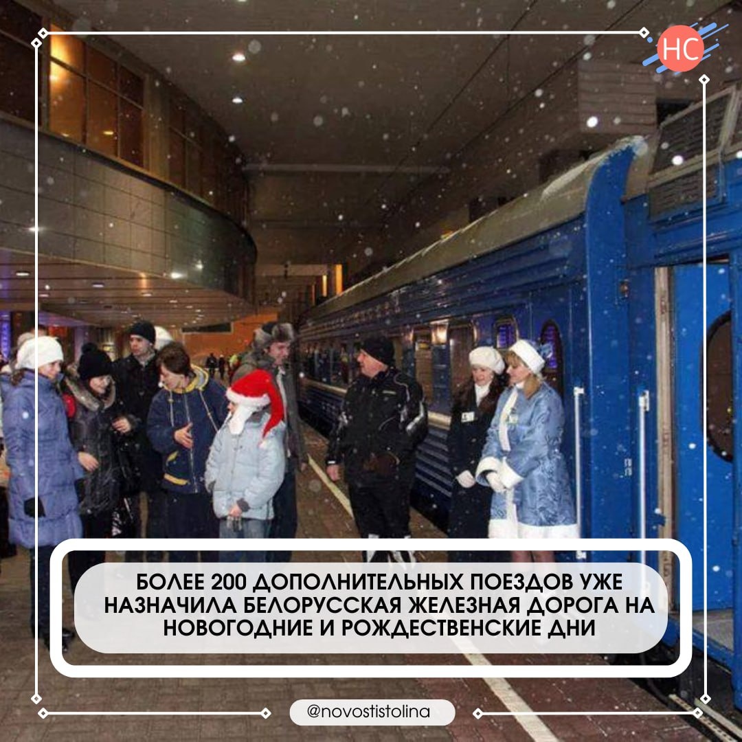 Для доставки пассажиров в период с 24 декабря по 12 января в международном сообщении с Российской Федерацией во взаимодействии с "РЖД" дополнительно назначено более 60 поездов по популярным направлениям: Минск - Москва, Брест - Москва, Полоцк - Москва и Минск - Санкт-Петербург. 🔵Во внутриреспубликанском сообщении назначено порядка 150 дополнительных поездов по основным пассажирообразующим направлениям, связывающим Минск с областными центрами. Продажа билетов на поезда уже открыта.
