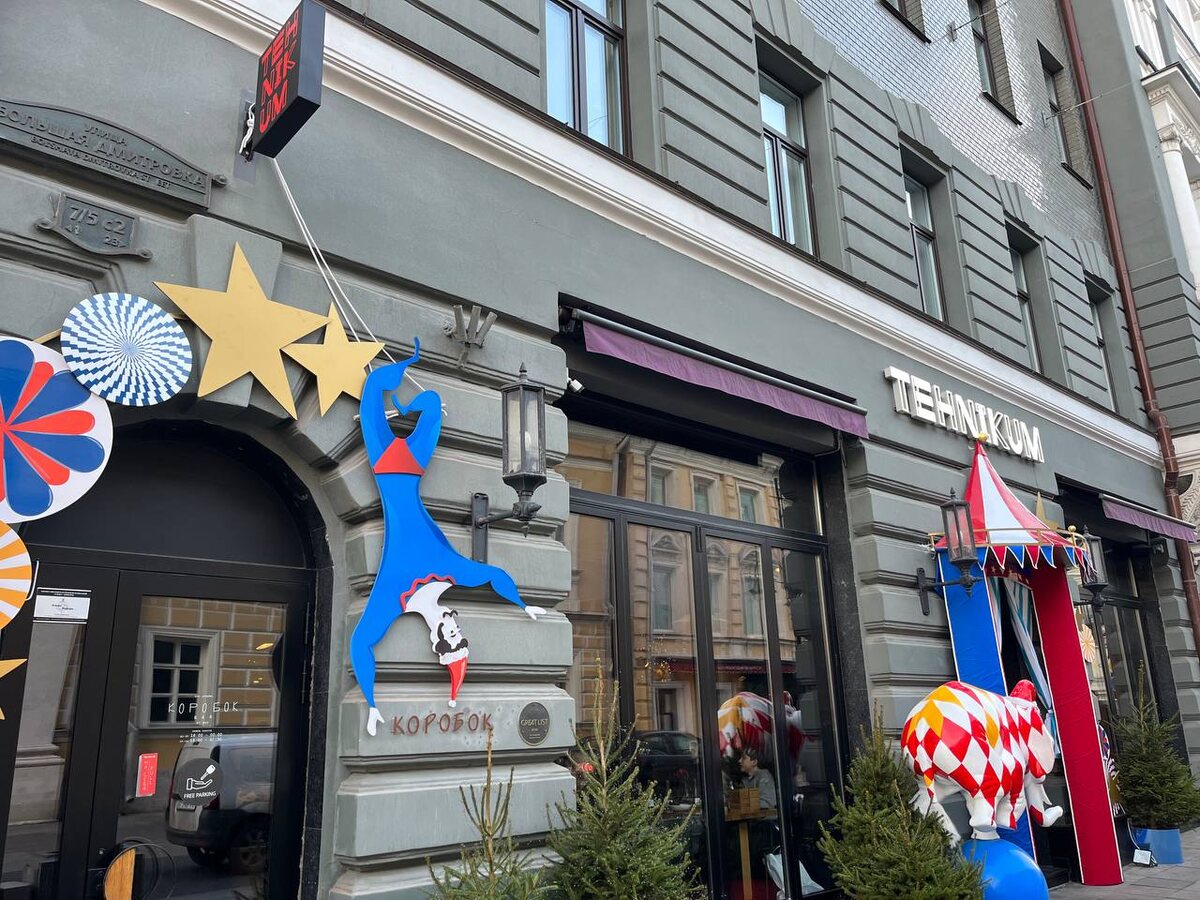 Приветствую на канале! Недавно мы с подружкой договорились встретиться в достаточно известном московском заведении "Техникум", который расположился по адресу Большая Дмитровка 7/5с2, рейтинг на Яндекс.Картах 4,9 на основании более 11500 оценок, и в котором, на удивление, я еще ни разу не была. К слову, в России несколько филиалов Техникума: 2 в Москве, 2 в Сочи, 1 в Тюмени и скоро открытие в Новосибирске. Ресторан относительно небольшой - 1 зал, разделенный толстой перегородкой. Столиков очень много и все понатыканы близко друг к другу. Открытая кухня, которая плавно перетекает в барную зону. Заведение позиционирует себя "гастробистро", поэтому внутренний стиль представляет собой эдакую смесь лофта, кафе и ресторана. Столики деревянные и небольшие, кожаные диваны и стулья, часть стен обито деревом, а часть представляет собой окрашенный кирпич. Необработанный потолок и искусственная лепнина на нем, а на большой общей стене фреска изображающая линию раздачи в ресторане. Тем временем уж