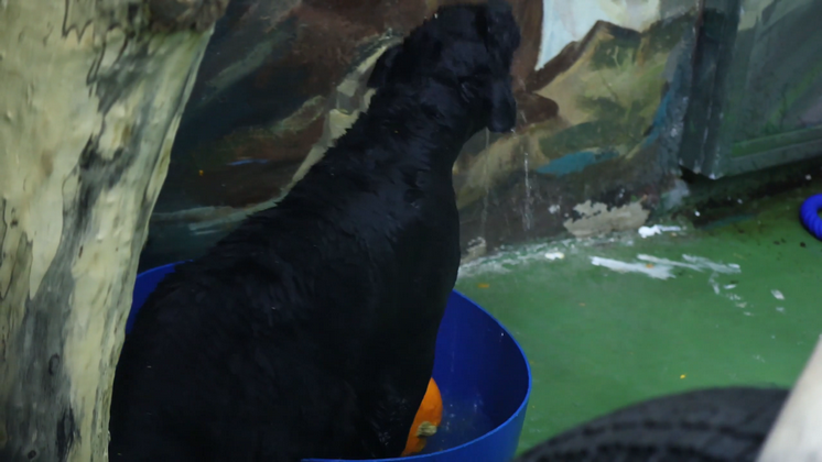 В новосибирском зоопарке ягуар Габриэль искупался в тазике с тыквами