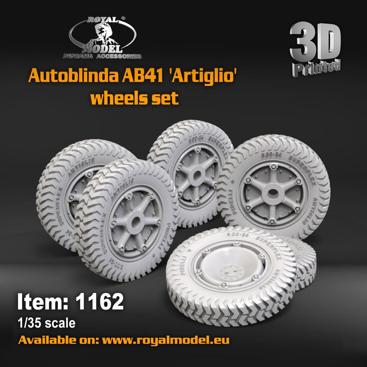 Royal Model выпустили набор колес для модели Autoblinda AB41 'Artiglio' в 1/35 масштабе