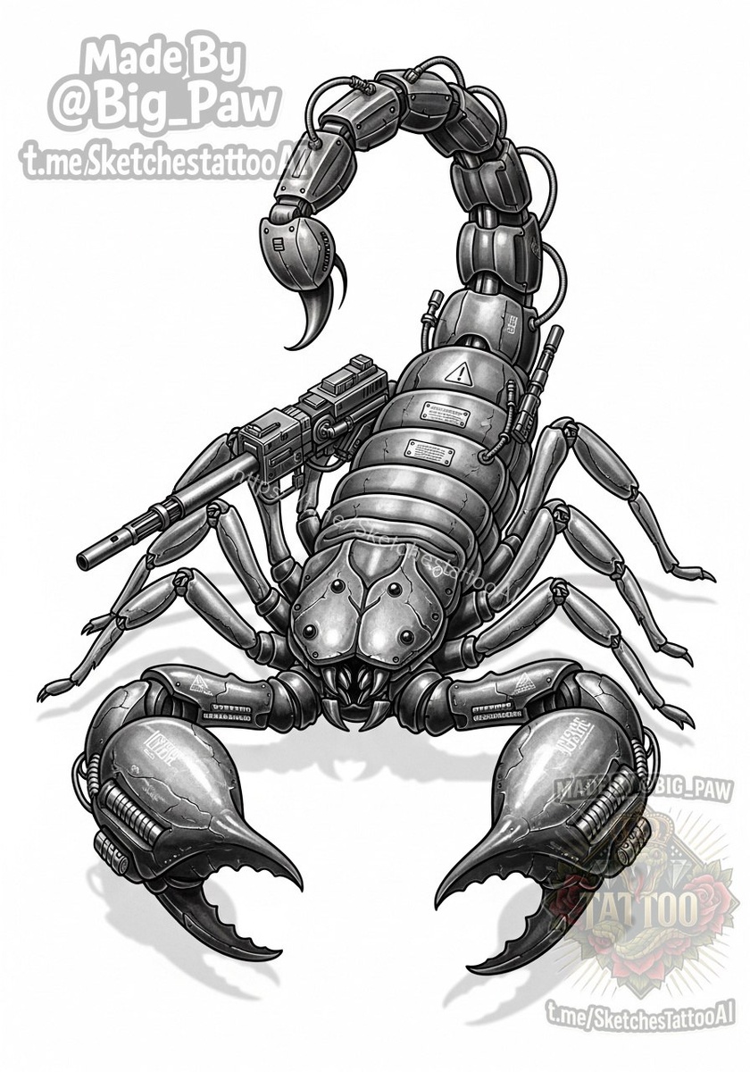 #2828 Подборка по запросу подписчика - можно тату эскиз: скорпион в стиле кибер панк, вооружённый, поднято жало, открытые клешни