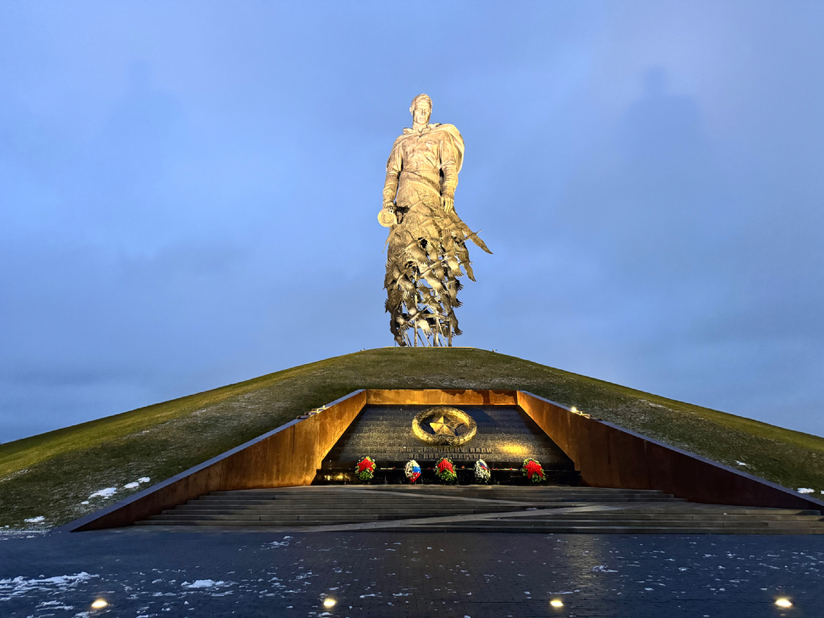 Путешествие по Тверской области невозможно представить без посещения Ржевского мемориала Советскому Солдату. И после музея Поисковика наша группа направилась именно к нему. 25 метровая фигура солдата возвышается на 10 метровом холме. Он уже никуда не торопится: голова склонена, оружие опущено. Его война закончилась. В голове песня которую мы пели в школьном хоре, крутится не останавливаясь: «Мне кажется порою, что солдаты, С кровавых не пришедшие полей, Не в землю эту полегли когда-то, А превратились в белых журавлей» Ржевский мемориал открыт в 2020 году. Его установили рядом с деревней Хорошёво, на территории, где в годы войны проходили тяжёлые бои. Проект создан Российским военно-историческим обществом при поддержке ветеранов и родственников погибших. Главная цель показать масштаб потерь под Ржевом и напомнить о тех, чьи имена долго оставались неизвестными. Место выбрано не случайно: именно здесь поисковики годами находили останки бойцов, которые так и не были возвращены домой. Осно