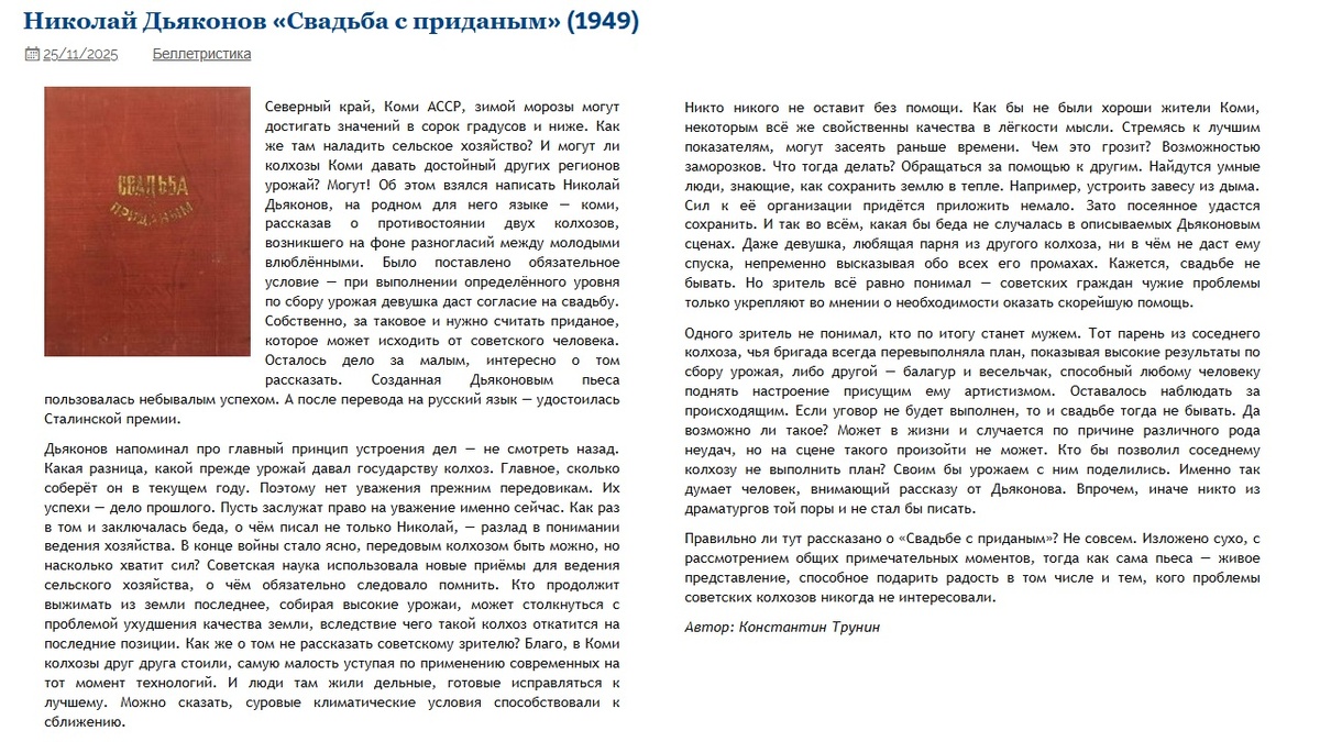 Николай Дьяконов "Свадьба с приданым" (1949) | Критика