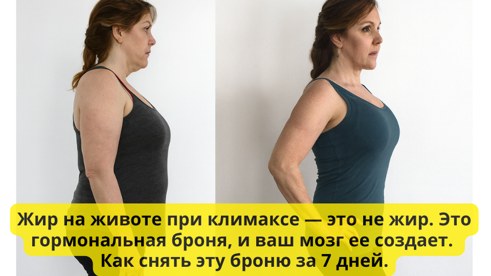 Жир на животе при климаксе — это не жир. Это гормональная броня, и ваш мозг ее создает. Как снять эту броню за 7 дней.