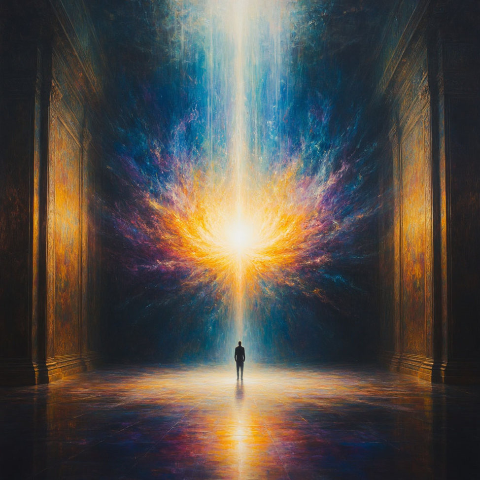 Когда они приземлились, то оказались в месте, подобном ничему на Земле — в зале из живого света, где стены пульсировали энергией. В центре зала парил источник — сияющий кокон, окутанный тьмой.