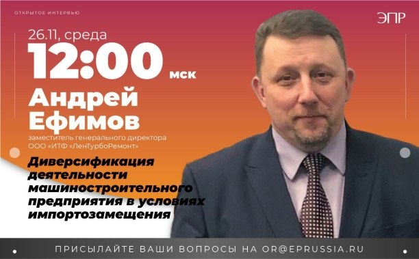Открытое интервью с заместителем генерального директора ООО «ИТФ «Лентурборемонт» Андреем Ефимовым https://www.eprussia.ru/news/base/2025/4063697.htm В среду, 26 ноября, в 12:00 (мск) состоится Открытое интервью с заместителем генерального директора ООО «Инженерно-техническая фирма «Лентурборемонт» Андреем Ефимовым. Тема интервью «Диверсификация деятельности машиностроительного предприятия в условиях импортозамещения». Интервью пройдет на платформе ZOOM. Ссылка для подключения - https://us06web.zoom.us/j/82074207720 Какие решения в области энергетического машиностроения, включая инжиниринг, производство, поставку, монтаж, сервис и модернизацию основного и вспомогательного оборудования машинных залов для тепловых и гидравлических электростанций готовы сегодня предложить специалисты ООО «ИТФ «Лентурборемонт» в рамках импортозамещения? Как ускорить процесс импортозамещения газовых и паровых турбин и когда можно будет говорить о переходе к импортоопережению? В чем секрет успеха компан