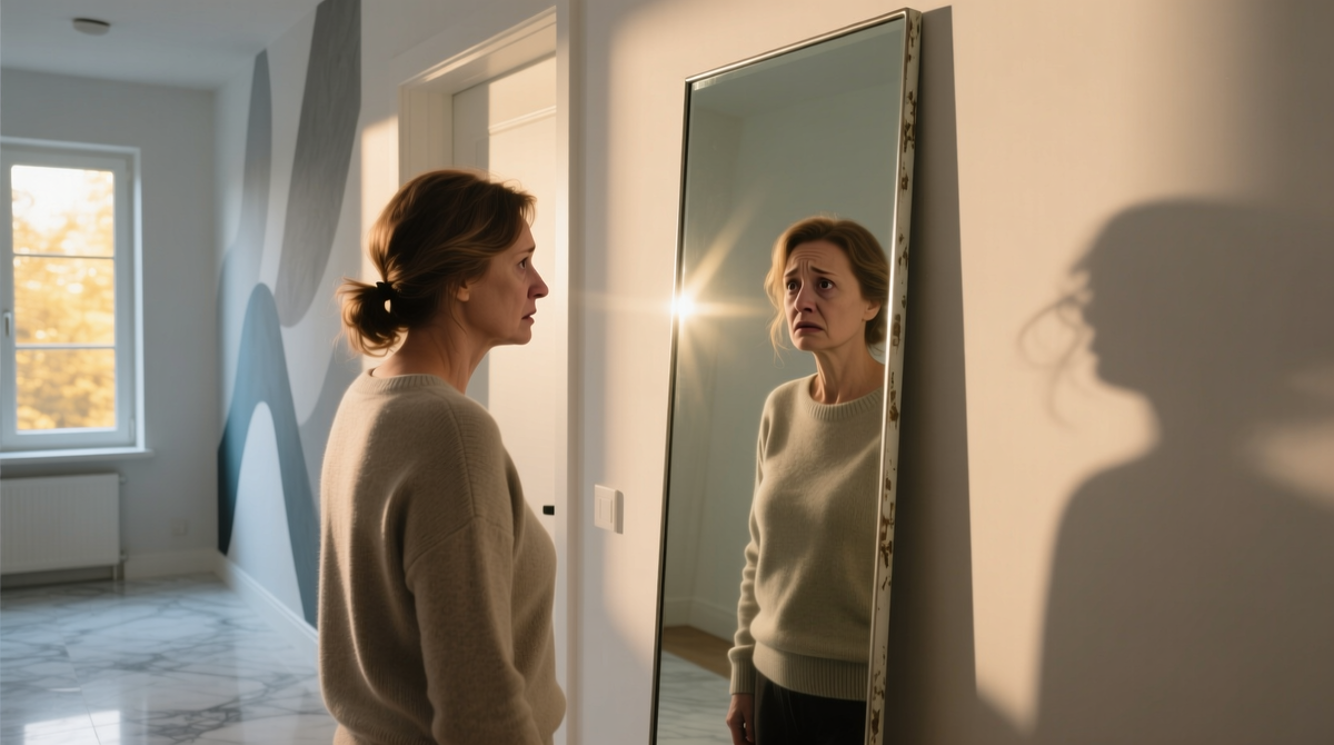 Ира осталась одна в тишине гостиной. Тени вокруг сгустились, но одна, самая главная, та, что жила в ее отражении, исчезла. Она подошла к зеркалу в прихожей. Впервые за долгие месяцы она видела только свое лицо — бледное, изможденное, мокрое от слез, но свое. Чистое.