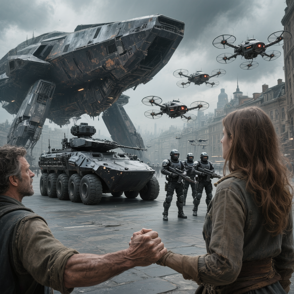 Свинцовые тучи нависли над городом, но не это заставляло Элиаса сжимать руку Лиры так, что кости хрустели. По всему периметру площади перед опустившимся модулем «Странника» выстроились войска. Бронетехника, солдаты в полной боевой экипировке. Воздух гудел от десятков военных дронов.